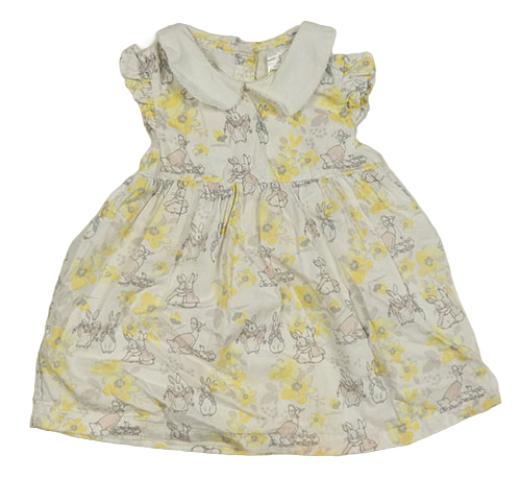 Biele kvetované šaty s Peter Rabbit a golierikom