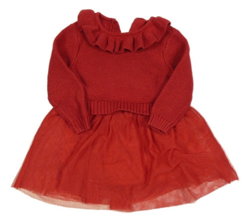 Červené trblietavé svetrovo/tylové šaty s golierikom M&S