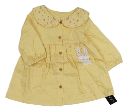 Nové - Žlté rifľové prepínaci šaty s králikom a golierikom s kvetmi Dunnes