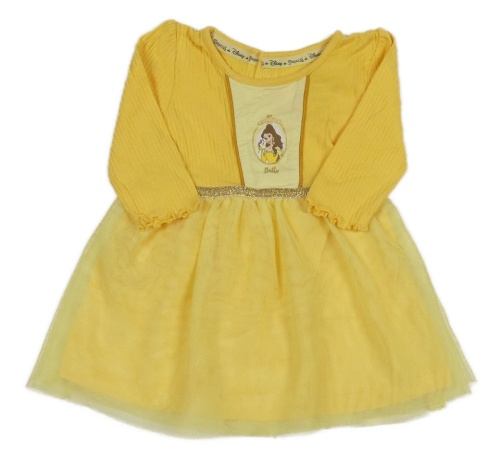 Tmavožluto-žlté rebrované šaty s Belle a tylem PRIMARK