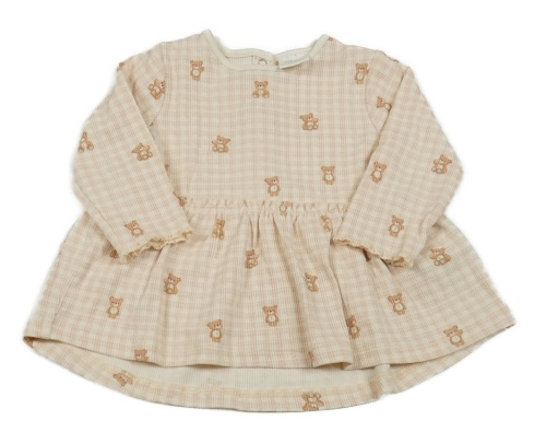 Bielo-ružové kockované rebrované šaty s medvedíkmi Next