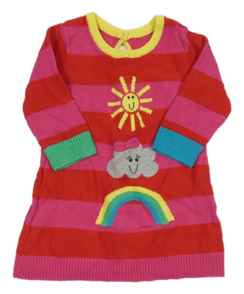 Ružovo-červené pruhované pletené šaty s dúhou a mrakem George