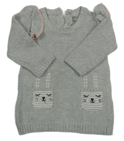 Sivé melírované svetrové šaty s vreckami s králikmi a volánikmi Primark