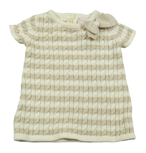 Smetanovo-béžové pruhované svetrové šaty s mašlou Savannah