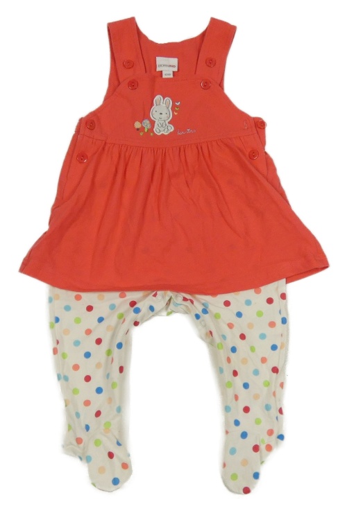 Ružové bavlnené šaty so zajačikom a všitým overalem Bornino