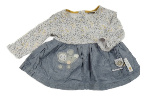 Modro-biele plátěno/bavlněné šaty s kvietkami a myškou Next