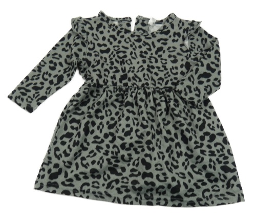 Sivo-čierne leopardí úpletové šaty s volánikmi
