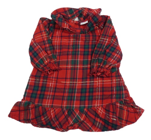 Červeno-tmavomodro/zeleno-zlaté kockované šaty s volánikmi Next