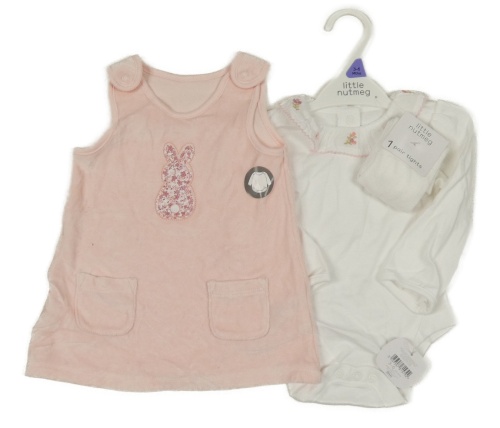 Nové - 3set - Svetloružové zamatové šaty so zajíčkem + biele body + pančuchy Nutmeg