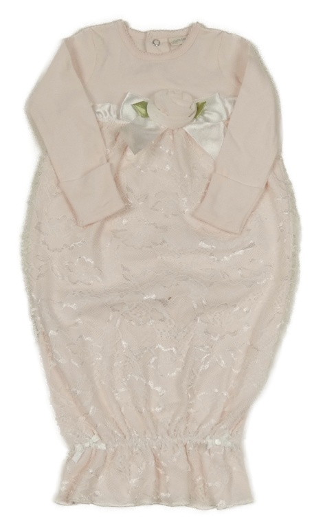 Svetloružové bavlněno/krajkové šaty s květem na křtiny
