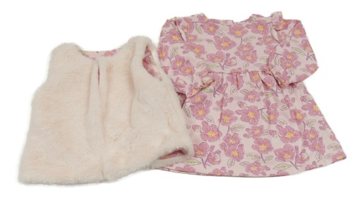 2Set - Svetloružové teplákové šaty s kvietkami a volánky + kožešinové bolérko St. Bernard