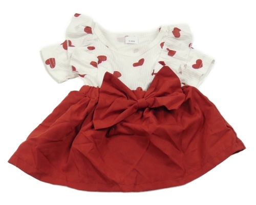 Bielo-vínové rebrované šaty so srdiečkami a mašlou