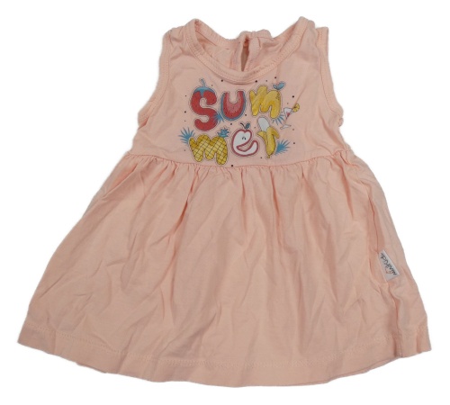 Broskvové šaty s nápisy s ovociem a jahůdkou a melónom
