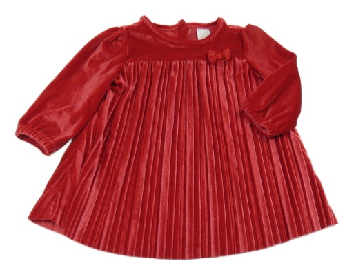 Červené zamatové plisované šaty s mašlou C&A