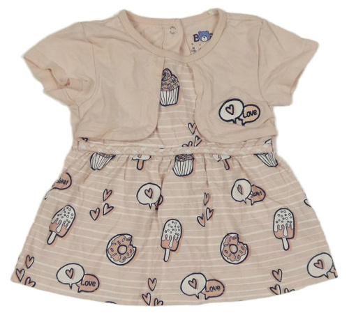 Svetloružová -biele pruhované šaty s nanuky a donuty a bolérkem