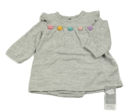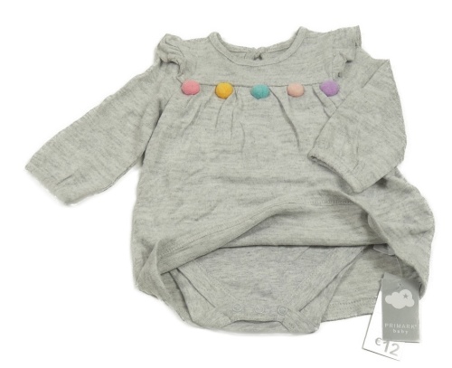 Nové - sivé melírované úpletové šaty s bambulkami a všitým body Primark