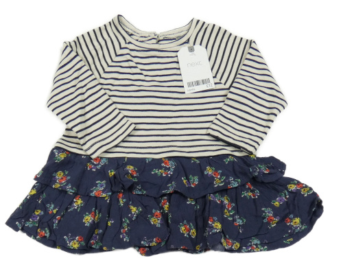 Nové - Tmavomodro-smotanové pruhované šaty s květovanou sukní Next