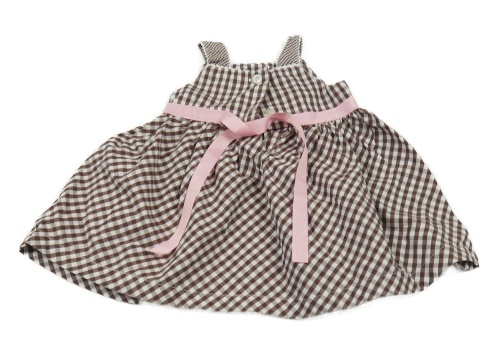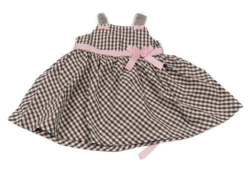 Hnedo-biele károvano/kostkované letné šaty s mašľami a motýlkom Baby Beri
