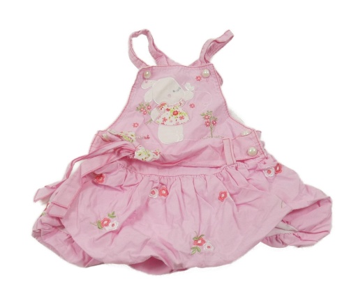 Ružové plátenné balonové podšité šaty so zajačikom a opaskom s mašlou