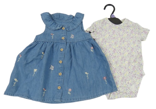 Nové - 2set - Modré rifľové prepínaci šaty s výšivkami květin + smotanové kvetované body F&F