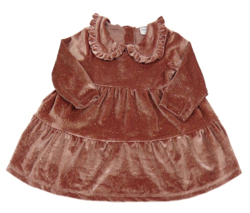 Staroružové trblietavé zamatové šaty s golierikom F&F
