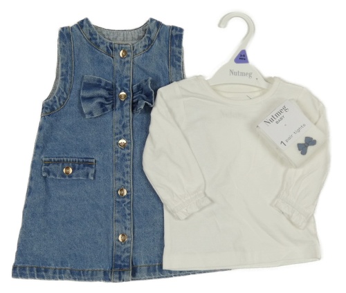 Nové - 3 set - modré rifľové šaty + biele triko + biele pančuchy Nutmeg