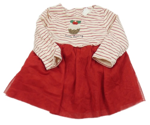 Smetanovo-červené pruhované teplákové šaty s tylovou sukní
