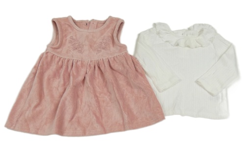 2set - Ružové zamatové šaty s květy + biele vzorované tričko s volánikom Dunnes Stores