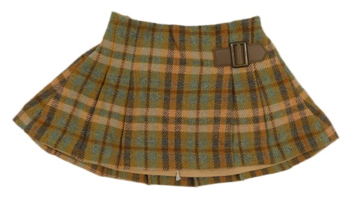 Hnedo-zeleno-béžová kockovaná vlnená sukňa Next