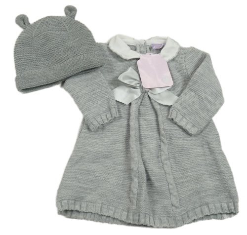 Nové - 2Set - Sivé melírované pletené šaty s mašlou a golierikom Dizzy Daisy + čepice s oušky Matalan