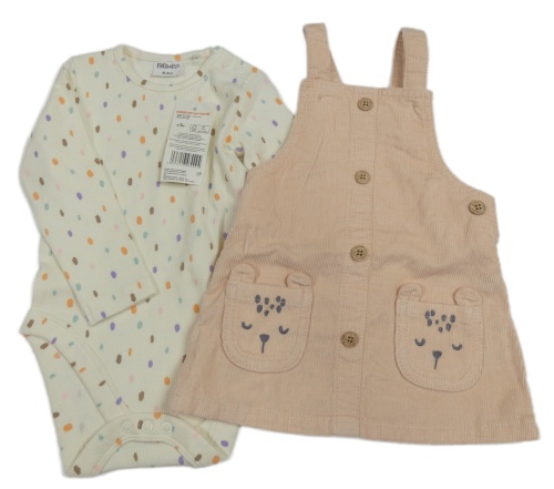 Nové - 2Set - Světlepudrové menšestrové šaty s čumáky + smetanovo/barevné vzorované rebrované body F&F