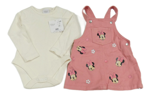 Nové - 2set - Svetloružové rifľové na traké šaty s Minií + smotanové body Disney