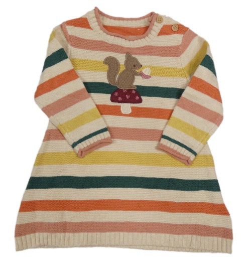 Smetanovo-farebné pruhované svetrové šaty s veverkou Nutmeg