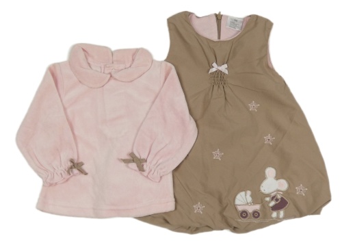 2set - Hnedé šušťákové podšité šaty s myškou + světlerůžová sametová mikkina