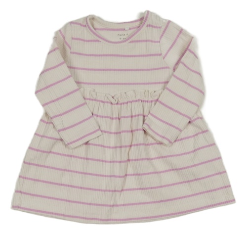 Smetanovo-ružové pruhované rebrované šaty s volánem Name it