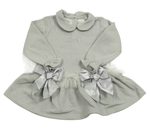 Sivé trblietavé teplákové šaty s mašľami a golierikom