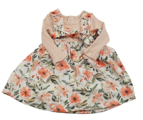 2Set - Bielo-pudrové šaty s kvietkami a kanýrky a žebrováním + zavazovací čelenka