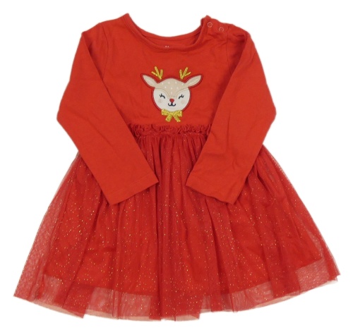 Červené bavlněno/tylové šaty so sobom a trblietkami Peacocks
