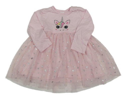 Svetloružové šaty s tylovou sukní a jednorožcom