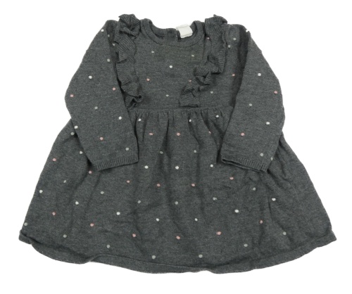 Tmavosivé bodkovaná é svetrové šaty s volánikmi H&M