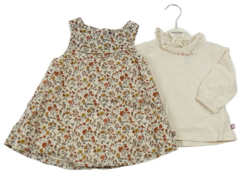 Nové - 2set - Béžové šifónové šaty s kytičkami + tričko Sergent Major