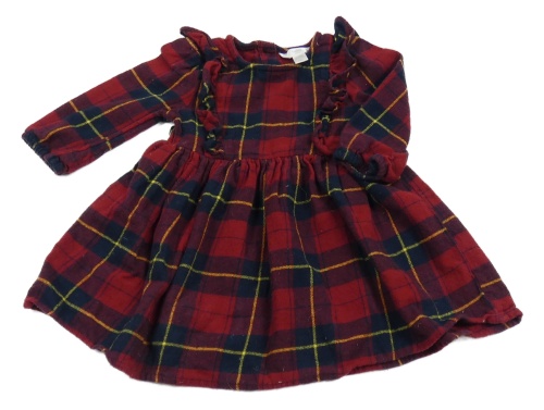 Tmavočerveno/tmavomodro-žlté kockované šaty s volánikmi M&Co