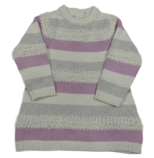 Bielo-svetlošedá -ružové pruhované svetrové šaty Topomini