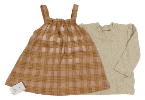 Nové - 2set- ružovo-béžová kockovaná sukňa s kšandami+ béžové tričko Nutmeg
