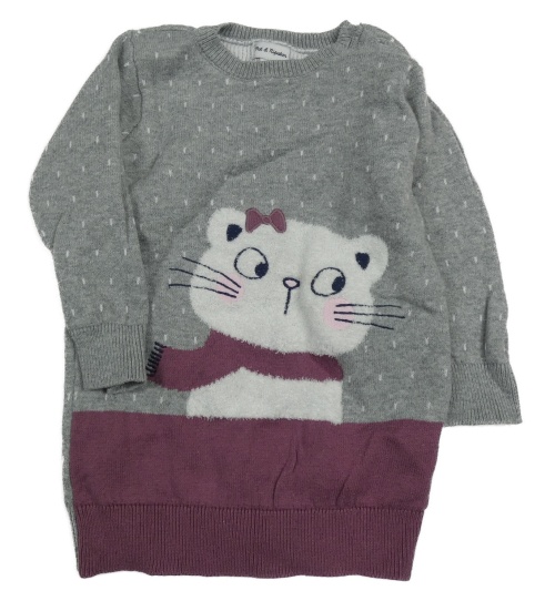 Sivo-fialové svetrové bodkovaná é šaty s mačičkou