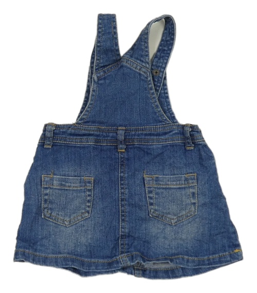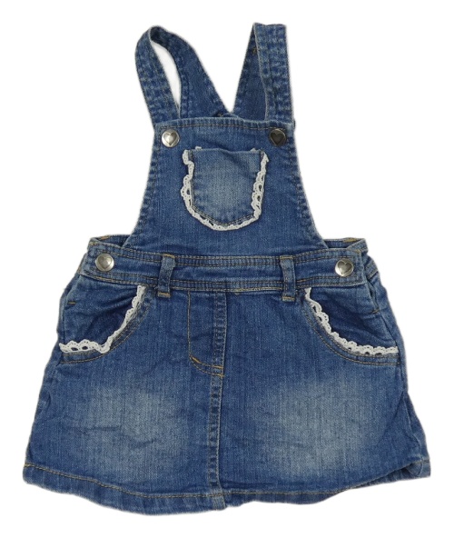 Modrá rifľová na traká sukňa s čipkou Topolino