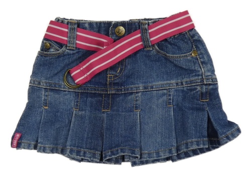 Modrá skladaná rifľová sukňa s ružovým opaskom H&M