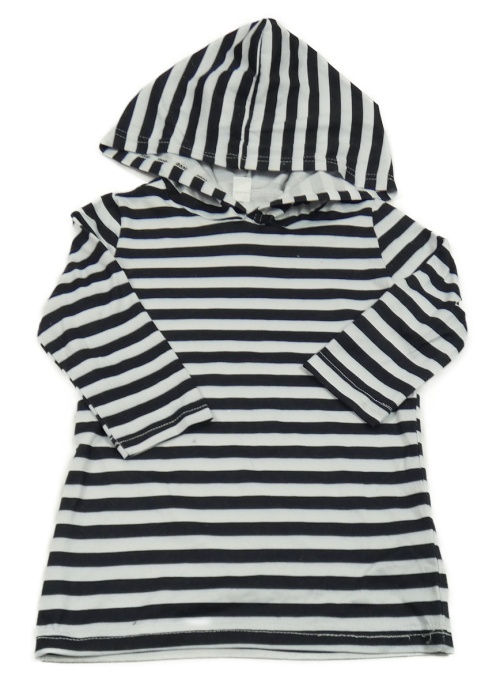 Bielo-čierne pruhované ľahké šaty s kapucňou