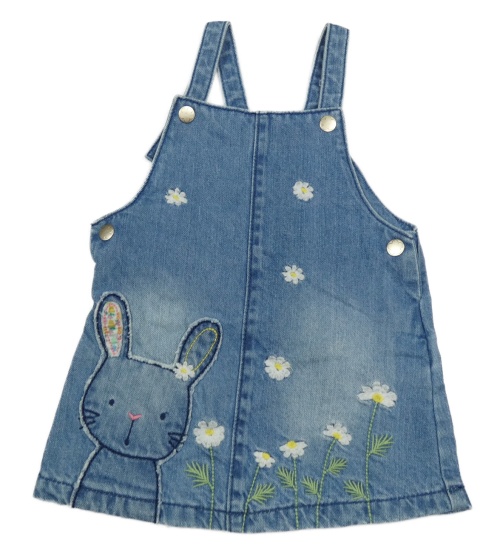 Svetlomodré rifľové na traké šaty s králikom a výšivkami květů F&F