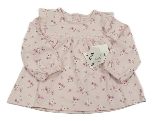 Nové - Svetloružové bavlnené šaty s kvietkami a čipkou C&A